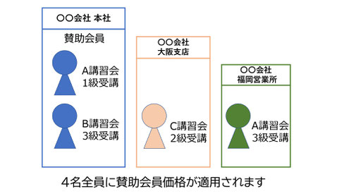 法人本社が賛助会員になっていれば、同一法人内の支店や営業所なども賛助会員価格が適用されます。
